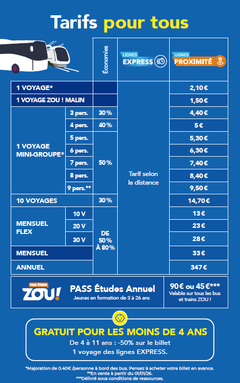 Pour obtenir davantage d'informations concernant les tarifs, les abonnements et les Pass étude annuels, veuillez consulter le site zou.maregionsud.fr